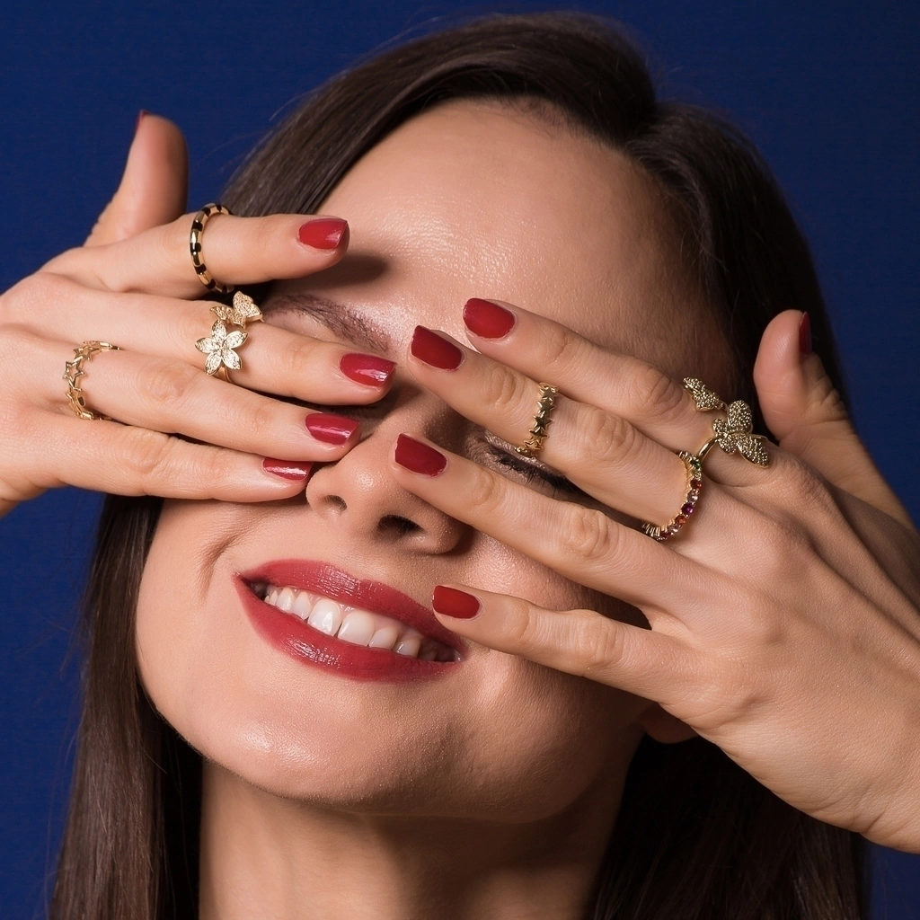 Anillo de plata 925 bañado en oro 18k con rayas esmaltadas (talle 7)